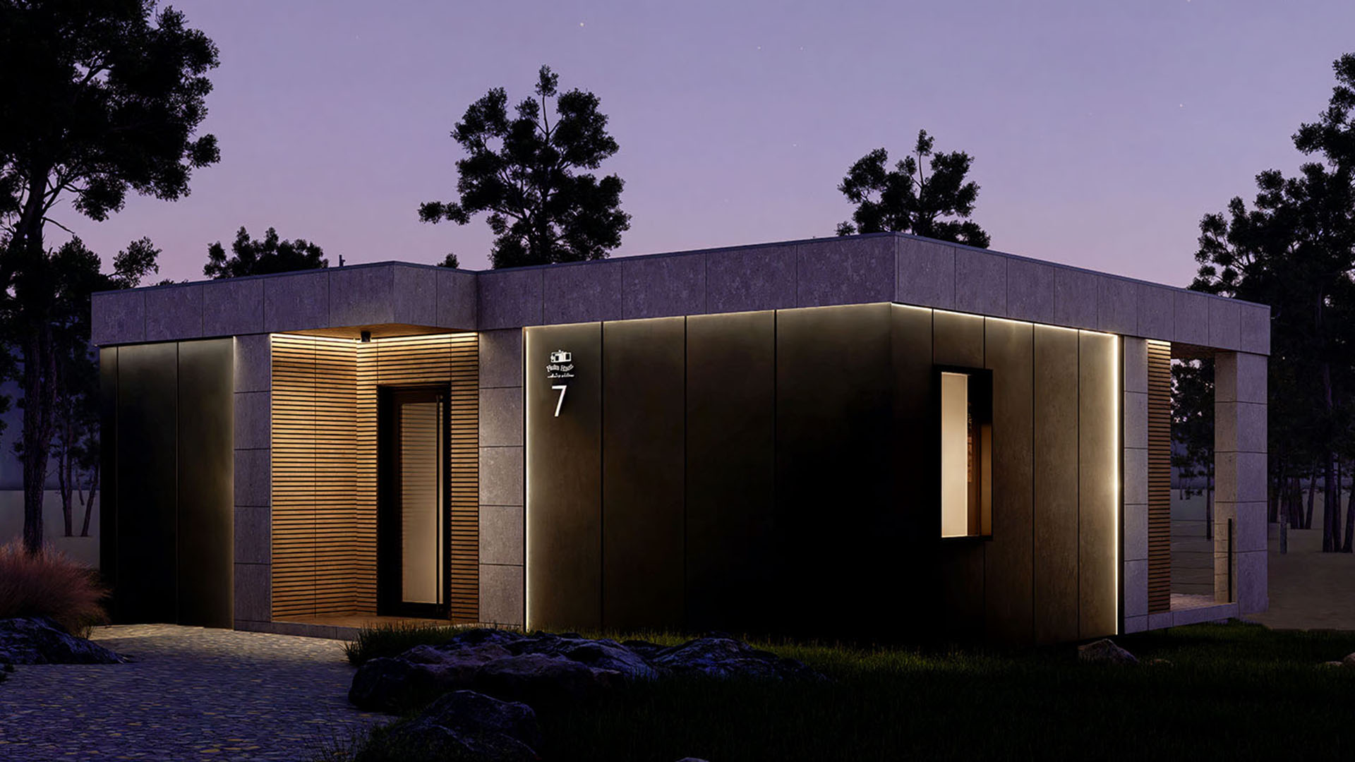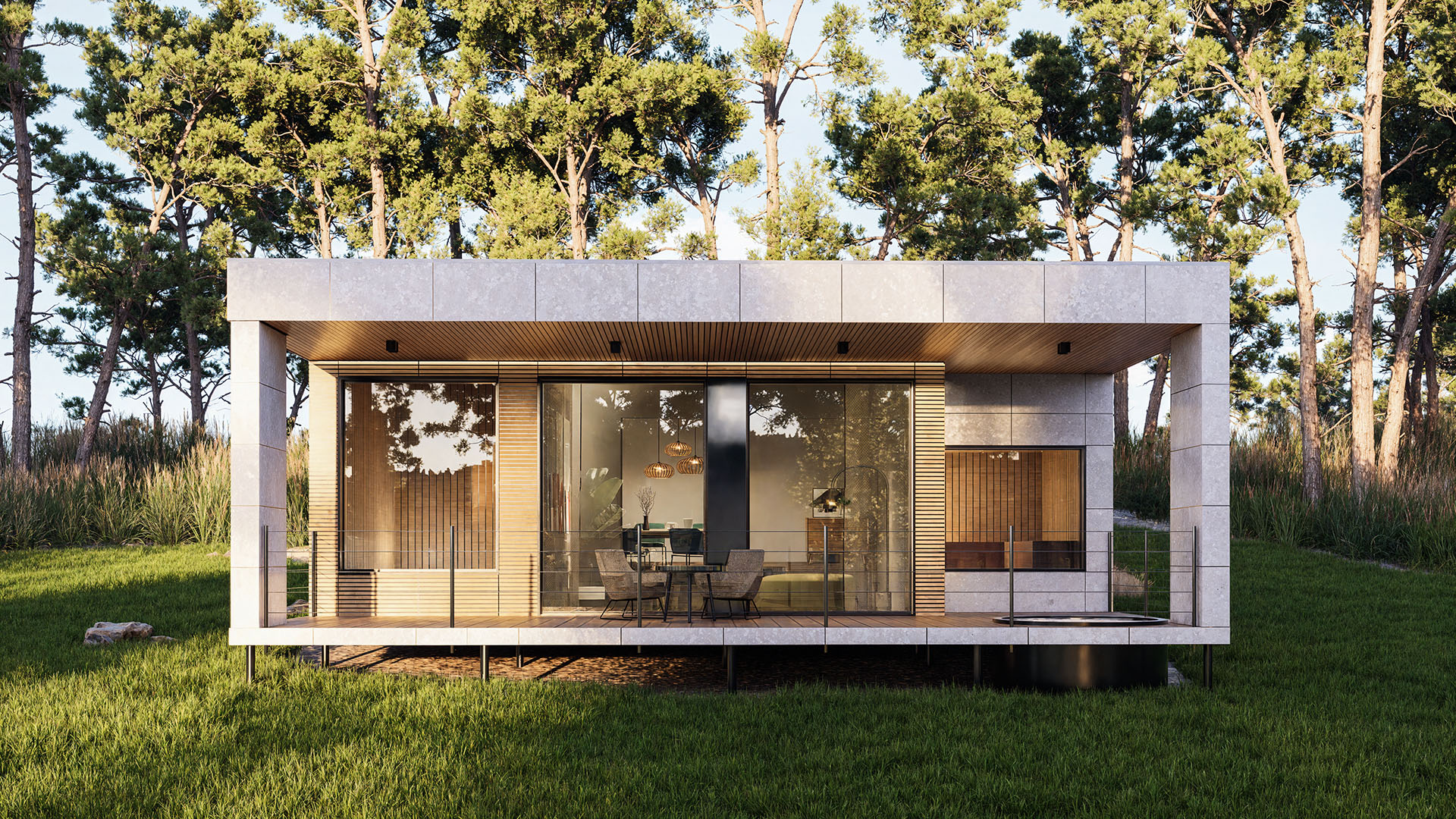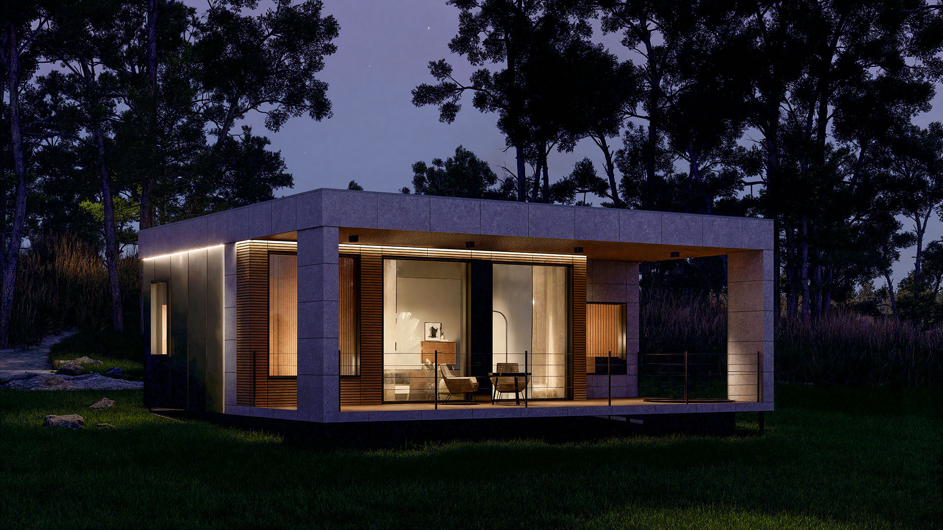 Оптимальные размеры дома позволяют гармонично вписать его в самые разные природные ландшафты. Дом может выступать как самостоятельный объект для уединённого отдыха или располагаться в группе, образуя уютный туристический посёлок.